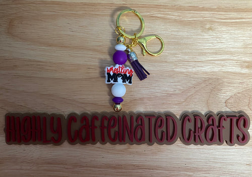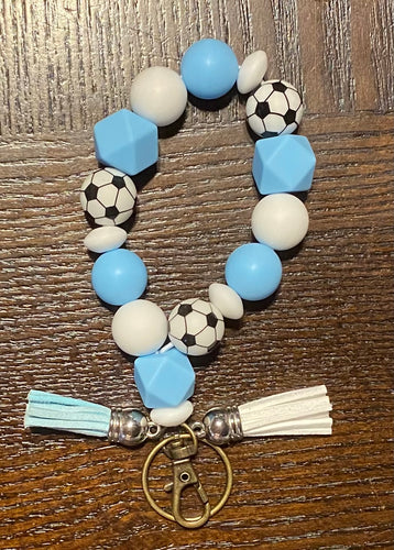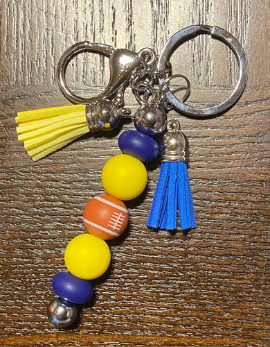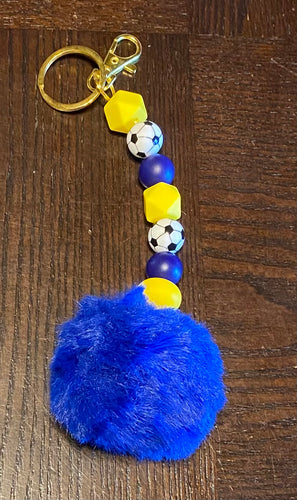Sports Beaded Straight Keychains/bag clips w/pompom
